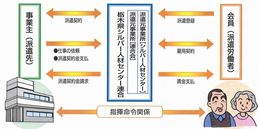 - シルバー人材センターでは、これまでの「請負・委任」による就業に加え、事務系職種や専門職種など、高齢者の新たな就業機会の拡大を図るため、「シルバー派遣事業」を実施しています。